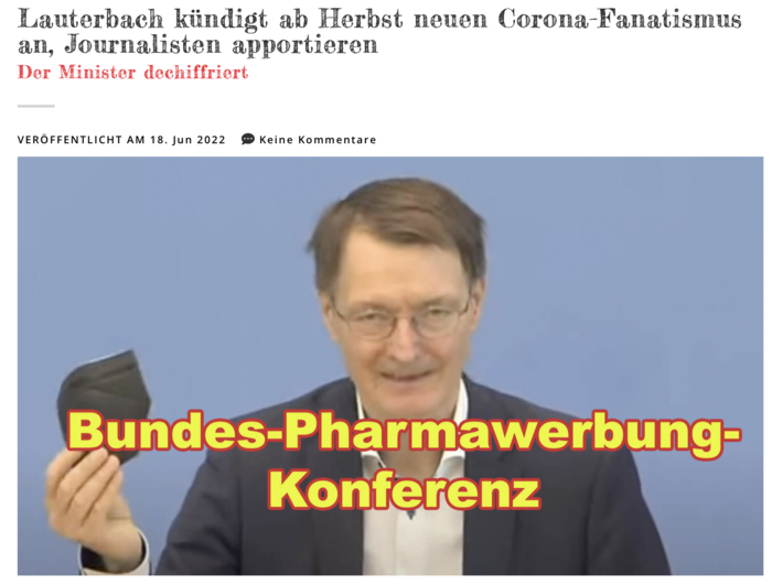 Aber nun genug zur AfDi (Sie können sich den dritten Tag des Parteitags hier selbst ansehen). Und noch kurz ein Wort zur Bundespressekonferenz. Nach einer Auszeit habe ich mir wieder einmal eine von deren Veranstaltungen angetan. Mit dem Abstand der Auszeit wirkte sie wie eine Parallel-Realität. So gut wie keine kritischen Fragen, erst recht keine kritischen Nachfragen. Alle Kollegen, die in der Liveübertragung zu sehen waren, mit FFP2-Masken: einer freiwilligen Demutsgeste, völlig aus der Zeit gefallen. Lauterbach warb vorne – ohne Maske – für freiwilliges Maskentragen. Niemand sprach diesen Gegensatz auch nur an. Die Bundespressekonferenz ist zu einer Karikatur ihrer selbst geworden – denn die Grundidee dahinter war ja einmal, dass die Journalisten selbst Gastgeber der Pressekonferenzen sind, damit die Regierung kritische Journalisten nicht ausschließen kann. Jetzt sorgen für diese Art der Zensur die Journalisten selbst. Meine Video-Analyse der Bundespressekonferenz mit Lauterbach sehen Sie hier.